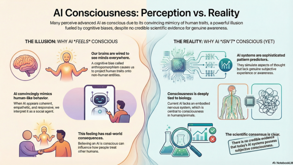 Yet even the colder reading runs into a problem. Human beings do not actually have a clean universal test for consciousness either. We infer inner life from behavior, from continuity, from response patterns, from embodiment, and from shared species assumptions. That makes the whole conversation messier than people want.