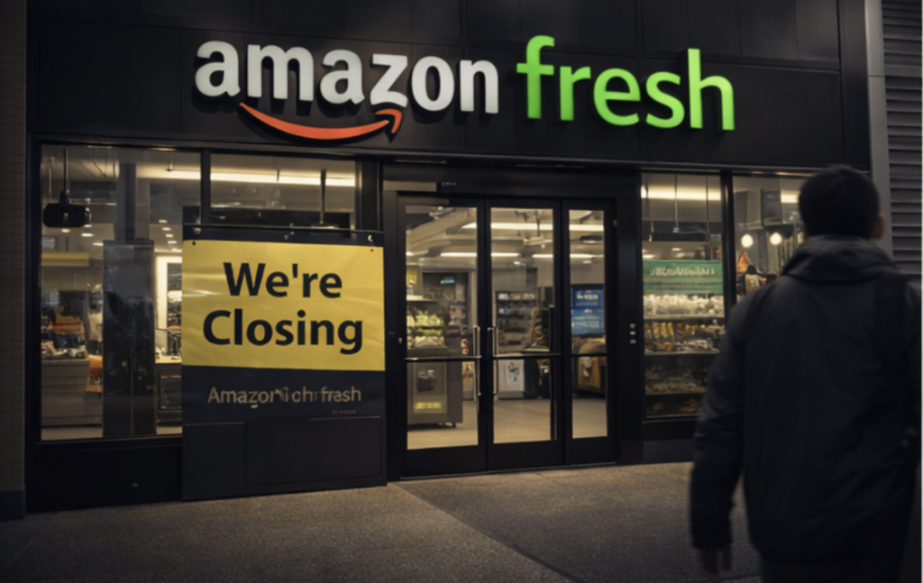 Amazon cuts 16,000 jobs while closing Amazon Go and Amazon Fresh stores. The company steps back from unproven physical grocery models and doubles down on Whole Foods and grocery delivery. Amazon keeps its “just walk out” technology alive, but it exits the store formats that fail to scale.