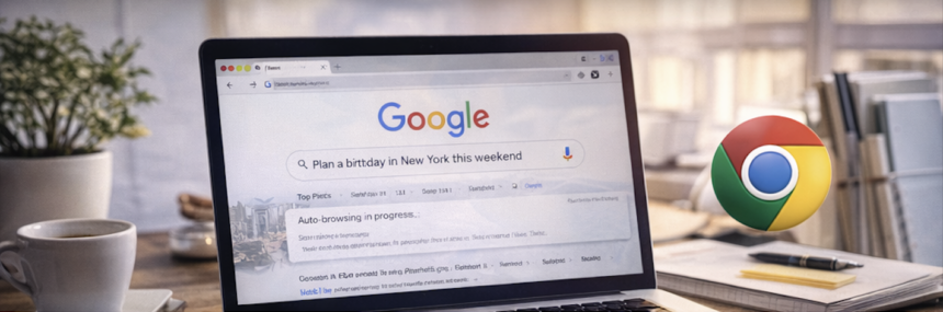 This week, Google begins testing a new feature called Auto Browse, which automatically searches, navigates, and completes multi-step online tasks for users. Instead of clicking through tabs, comparing results, and filling out forms yourself, Chrome starts doing that work for you.