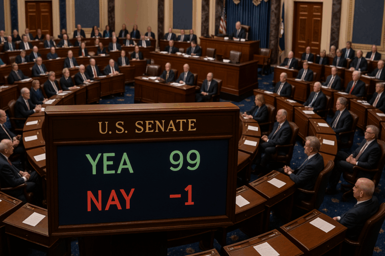 U.S. Senate Votes 99-1 to Stop AI Regulation Proposal